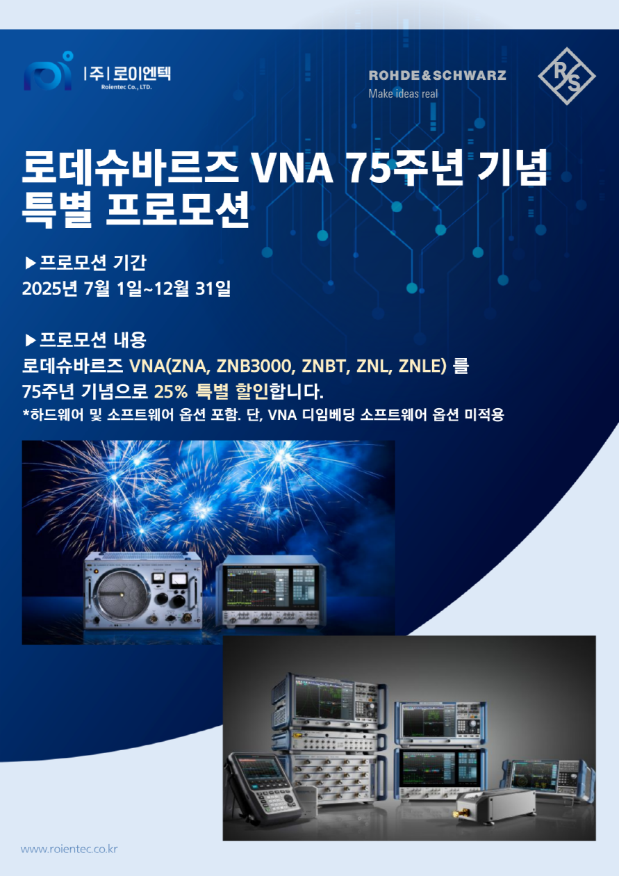 이번 로데슈바르즈 벡터네트워크분석기(VNA) 출시 75주년을 기념하며 특별 프로모션을 진행합니다.