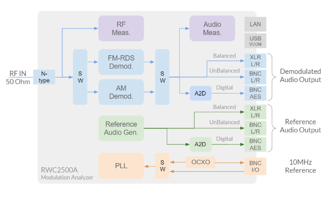 이 기능은 RWC2500A를 외부 오디오 측정 장비와 원활하게 연동할 수 있도록 하여, 통합 운용의 편의성을 높여줍니다.