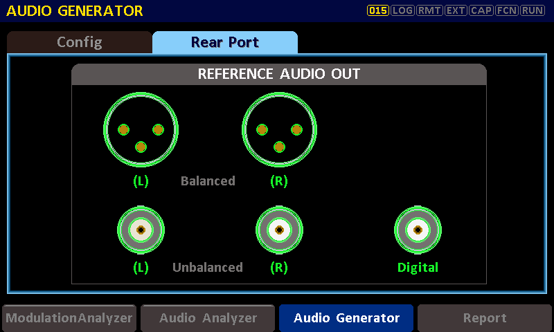 RWC2500A는 기준 오디오 신호를 생성할 수 있으며, 후면 패널에 위치한 다양한 BNC 및 XLR 포트를 통해 출력이 가능합니다.
