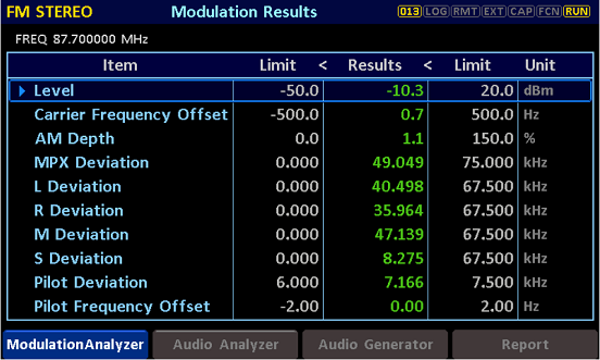 • 변조 및 오디오 측정 데이터 로깅 / Modulation and audio measurement data logger