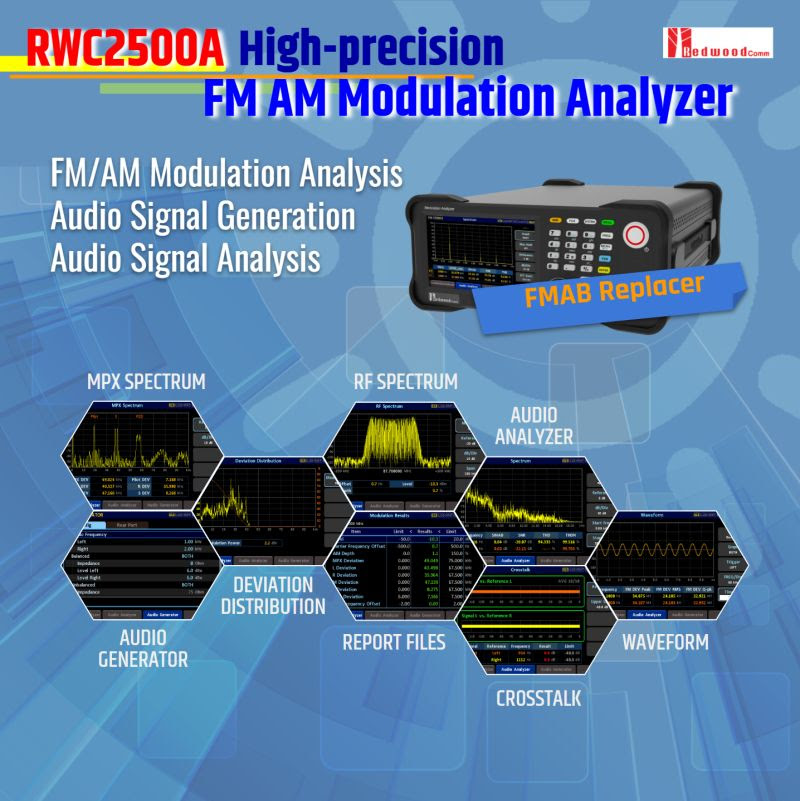 뿐만 아니라, RWC2500A는 복조된 스테레오/모노 오디오 신호의 파형 및 스펙트럼을 분석하고, 크로스톡 및 주파수 응답을 식별할 수 있는 고급 기능도 탑재하고 있어, 신호 특성에 대한 종합적인 분석이 가능합니다.