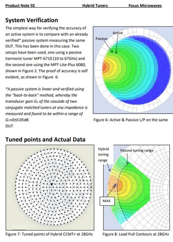 하이브리드 로드풀 시스템에서는 패시브 광대역 튜너가 먼저 최적 임피던스에 근접한 반사 계수를 생성하고, 이후 액티브 전력 주입을 통해 **스미스 차트 경계(Γ = 1)**까지 임피던스 조건을 확장합니다. 이 결합된 접근 방식은 **강한 불일치 조건(Mismatch Condition)**을 가능하게 하며, 순수 액티브 시스템보다 더 낮은 전력 요구량으로 동작할 수 있는 이점을 제공합니다.