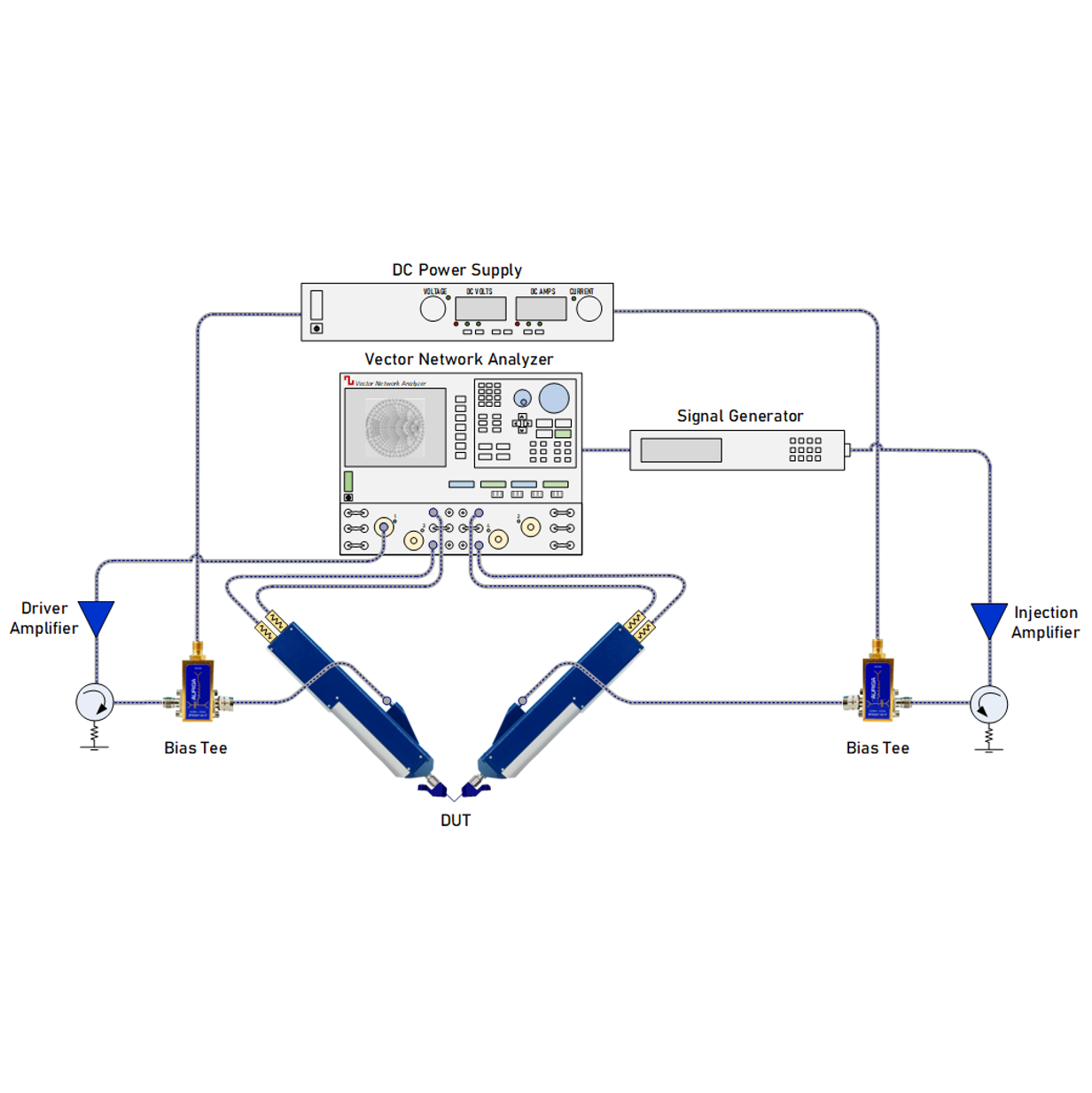 패시브 튜너는 대부분의 경우 효과적이지만, 임피던스가 매우 낮은 장치나 스미스 차트 가장자리 부근에서는 복잡한 임피던스 조건을 합성하는 데 어려움이 있을 수 있습니다. 특히 온웨이퍼 벡터 로드풀 구성처럼 튜너와 DUT 기준면 사이에 손실이 발생하는 경우, 임피던스 합성 능력이 더욱 제한됩니다.